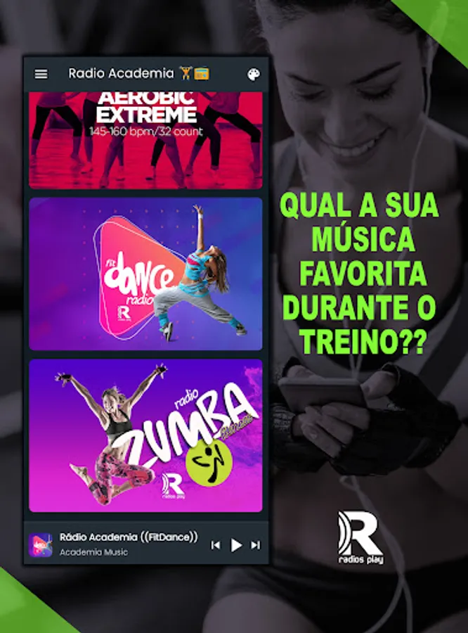 In this app you will find the best gym music radios, easily, quickly and without cuts, so that you don't have to interrupt your exercise for lack of motivation.