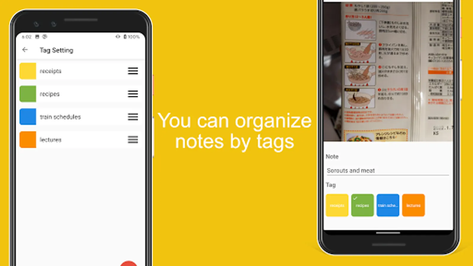 Tags can be added, deleted, and reordered from the pre-prepared colors. You can also reorder your notes.
