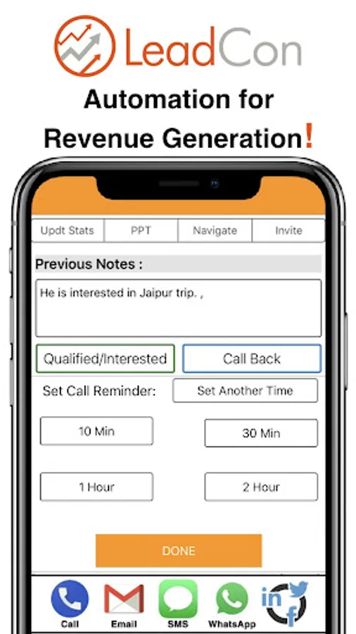 Today managing sales funnel is an important aspect. It’s not more about just generating leads, but closing them effectively and efficiently is of an utmost importance. Call-R App is the simplest form of Sales Followup and closer tool available in the market today. It helps you connect through a presiding debate data, update the sales funnel on the move, bifurcate the leads as per the interests group and also set reminders, so that you never miss any call back requests.