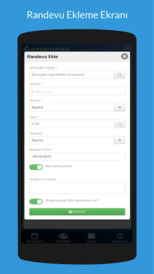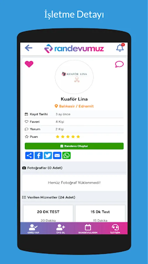 Our appointment app will make your life easier. Dentist, Barber, Hairdresser, etc. with our appointment application. It includes all sectors working by appointment. With our Appointment application, it allows you to make an appointment comfortably and safely and go to your appointment. With our Appointment application, it reminds you of your appointments with many features such as the services you have received, via SMS or notification system, and ensures that you do not miss your appointments and go in a healthy way thanks to directions. With the comment and scoring system, you can positively and negatively interpret the service you have received and the workplace, and you can ensure that the people around you receive a healthy service.