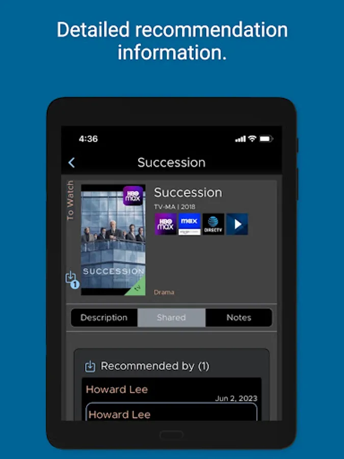 And when friends send you their latest picks, you’ll have a list waiting for you when you're ready for your next book, movie, TV show, or podcast.