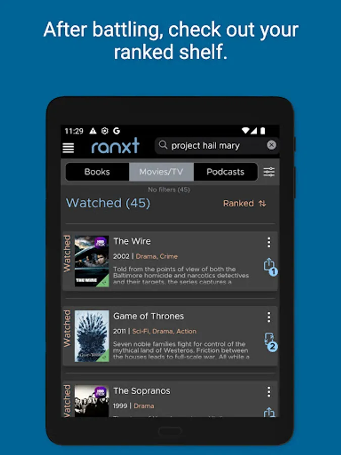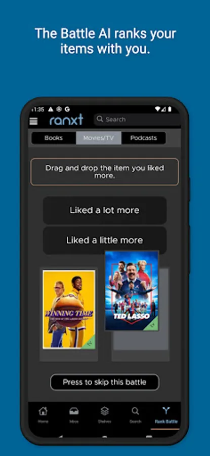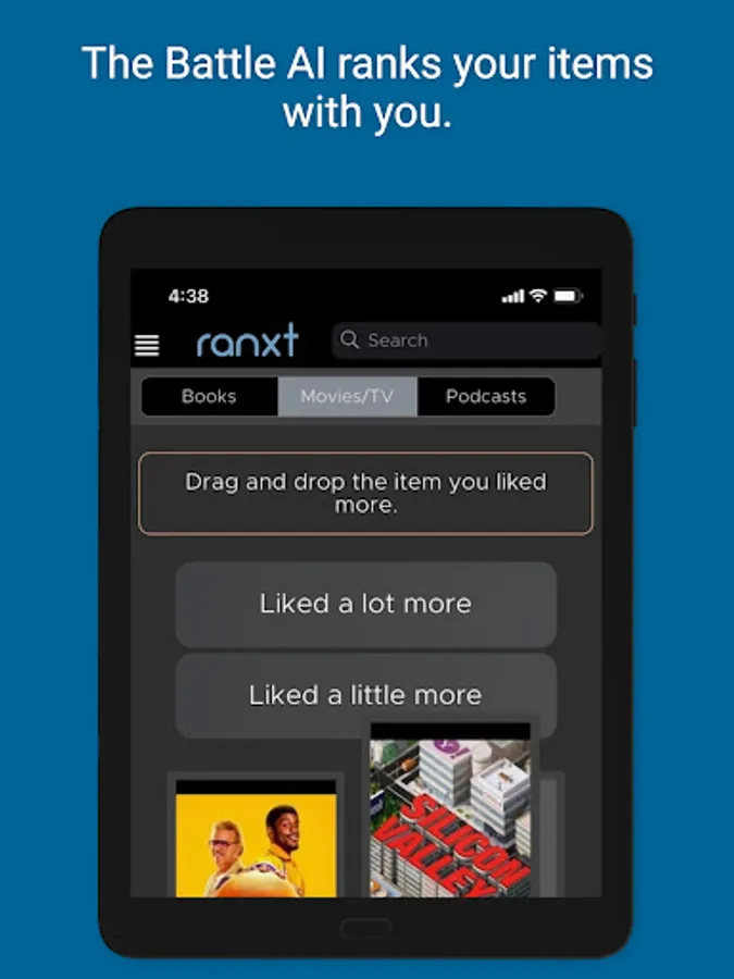 * Rank Battle is a unique feature of the ranxt app that helps you to compare two titles side-by-side and vote on your favorite.