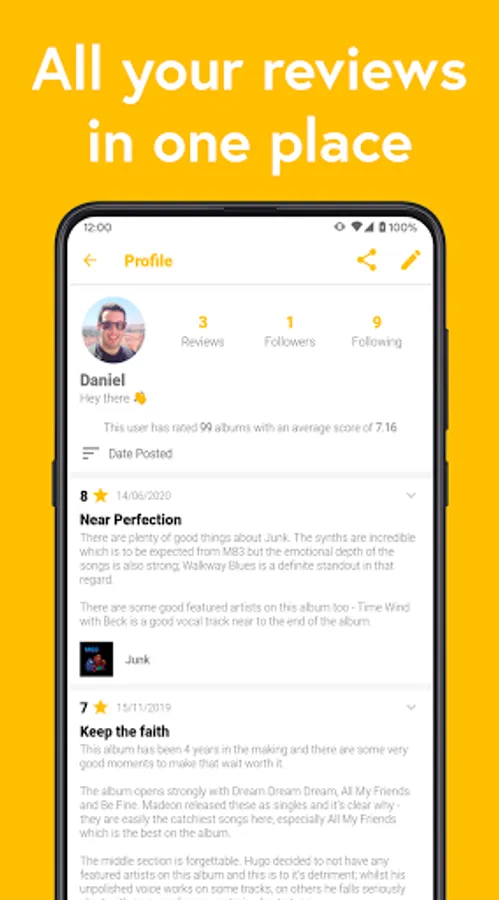 Create and account, start writing album reviews and follow your friends to see their reviews on your homepage.