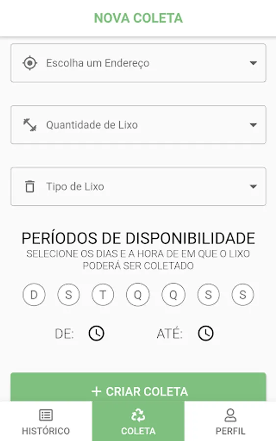 Regardless of the amount of waste to be disposed of, Recycle + provides options for creating your request that will be displayed to collectors available in the region. The service is not charged at any time and accepts various types of recyclable materials!