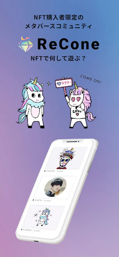 By having the key (NFT) of your favorite creator, you can participate in and interact with ReCone-only live distribution, chat, and content.