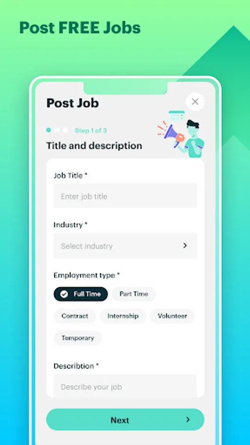 Find all employment types in this job search app (Full-Time, Contract, Part-Time, Internships, Volunteer, Temporary and Work Remotely)