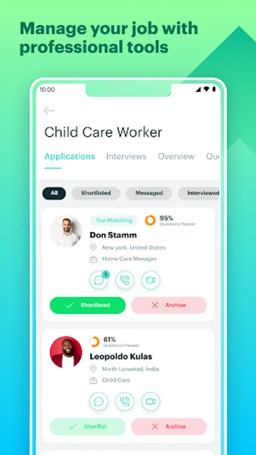 Track your application status (Reviewed, Shortlisted, Messaged, Interviewed and Hired)