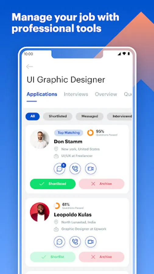 *you can schedule detailed interviews with candidates have applied to your jobs and get complete vision about their availability and best time to interview.