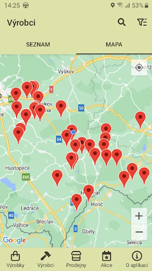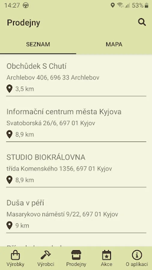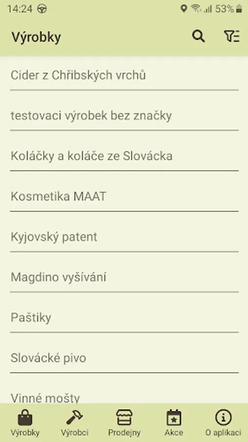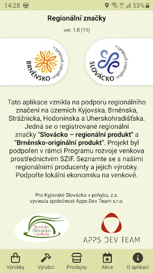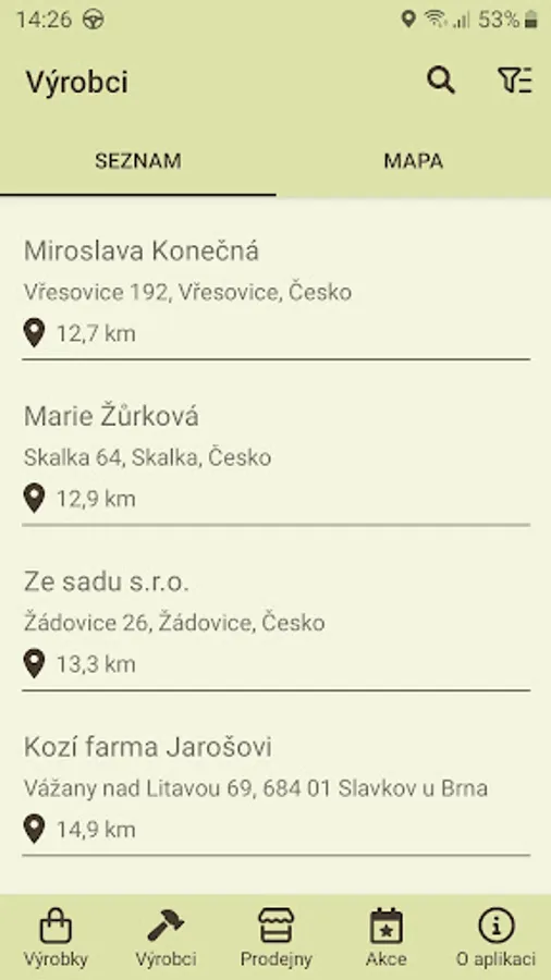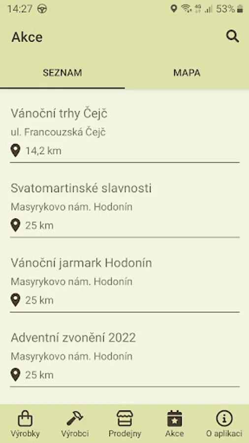 In the mobile application, you will find regional products including photos and labels, their manufacturers, also including photos, labels and contact information. You will also find stores where these products can be purchased. And last but not least, you will also find regional events here, e.g. various fairs and markets.