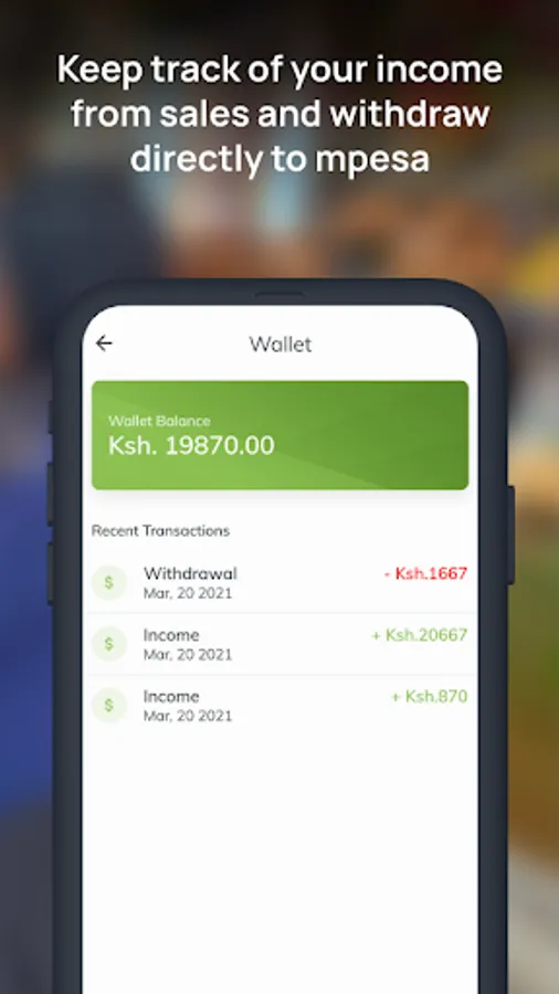 - Keep track of your income as you sell and withdraw directly to mpesa 👀