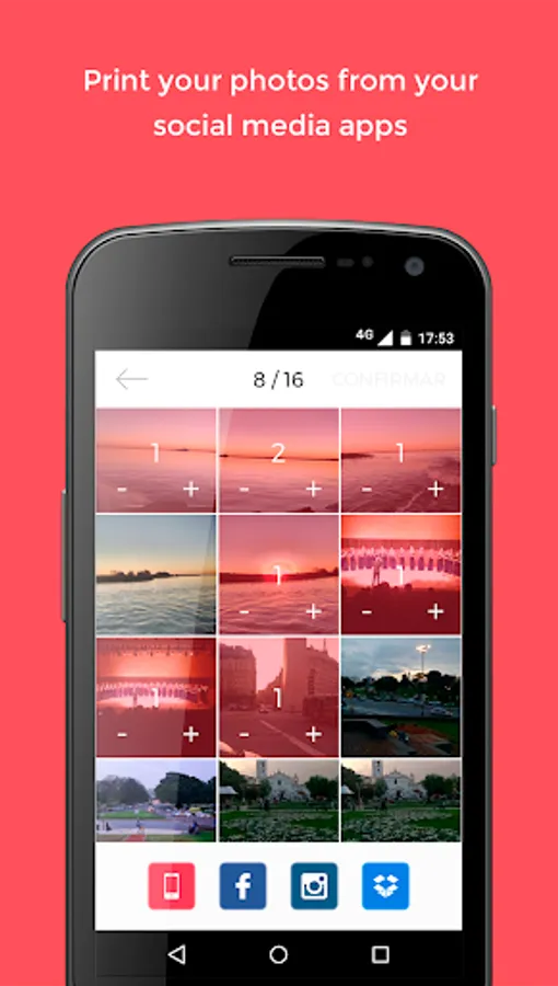 Choose your favorite product and select your photos from your phone gallery or directly from Instagram or Facebook. In a few steps get your photos printed and delivered to your home within 4 working days for CABA and 10 working days for the rest of the country.