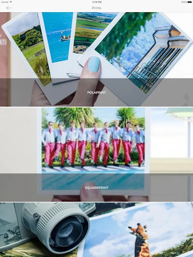 - Prints: select as many photos as you want and have them printed in our cool formats. Do you want to give your pictures a vintage touch? Choose our Polaroid format!