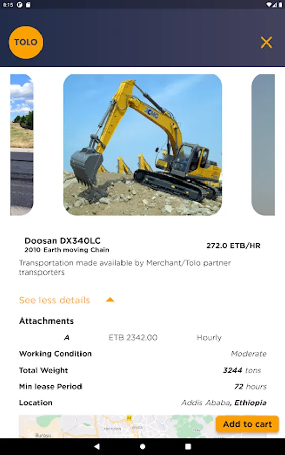 Tolo is a digital market place and coordination platform that matches entities and organizations taking part in the heavy machinery & construction equipment industry: owners, construction companies, users, maintenance facilities and other relevant stakeholders in its network. Tolo provides comprehensive solutions for its customers and partners through removing the hassle of coordinating with multiple third parties for rental, sales, maintenance, talent acquisition, training and financing transactions. Tolo provides comprehensive solutions for its customers and partners through removing the hassle of coordinating with multiple third parties for rental, sales, maintenance, talent acquisition, training and financing transactions.