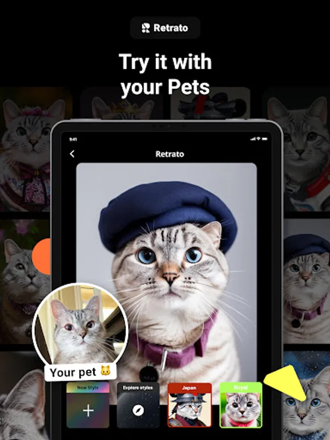 When it comes to image editing and photo enhancing, AI generated art is your best choice for flawless AI portraits. Not only will you impress everyone with amazing AI art of yourself, but you can also use Retrato to enhance photos of your pets. Upload your pet photos or self-portraits and by the time you say ‘AI’, Retrato will have created a fabulous photo or an avatar.