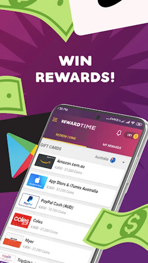 Exchange your in-app coins for PayPal credit or Gift Cards