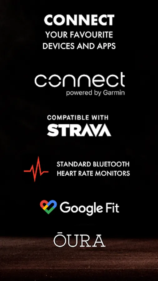 Rewire connects with Google Fit, Garmin Connect, Strava, Oura, Standard Bluetooth Heart Rate Monitors, and more.