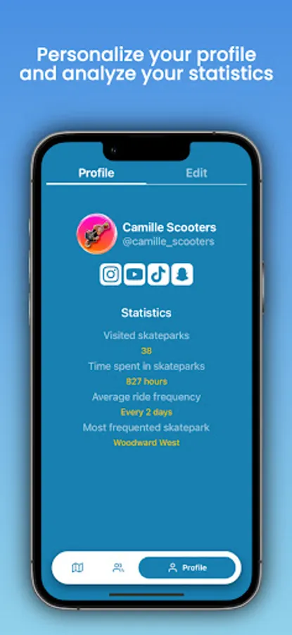[PROFILE] Personalize your public profile and analyze your statistics (number of skateparks visited, average ride frequency, etc.)