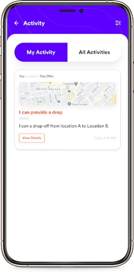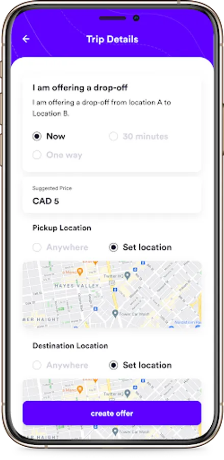 The requests and offers can be related to ride, delivery or any other type based on user's circumstances. The user has full control to either accept or decline any of the received responses.