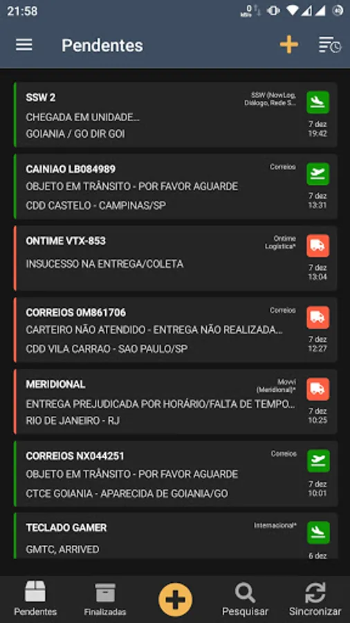 - Tracking parcel post and several national and international carriers / systems, such as DirectLog, TNT, Transfolha, Mercado Livre, Latam Cargo, Azul Cargo, DHL, FedEx, SSW, Wish, AliExpress and many others.