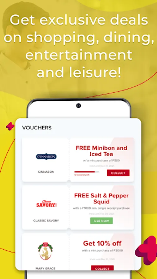 Collect exclusive discounts and offers from shops and partners of Robinsons Malls. Just present your RMalls+ app-exclusive voucher!