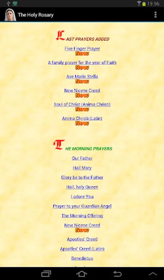 In the application there are also The Divine Mercy Chaplet and the main christian prayers.
