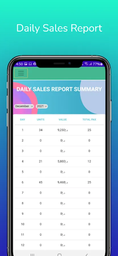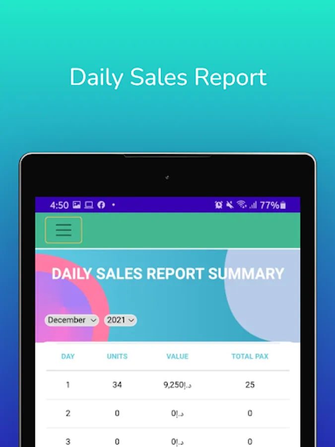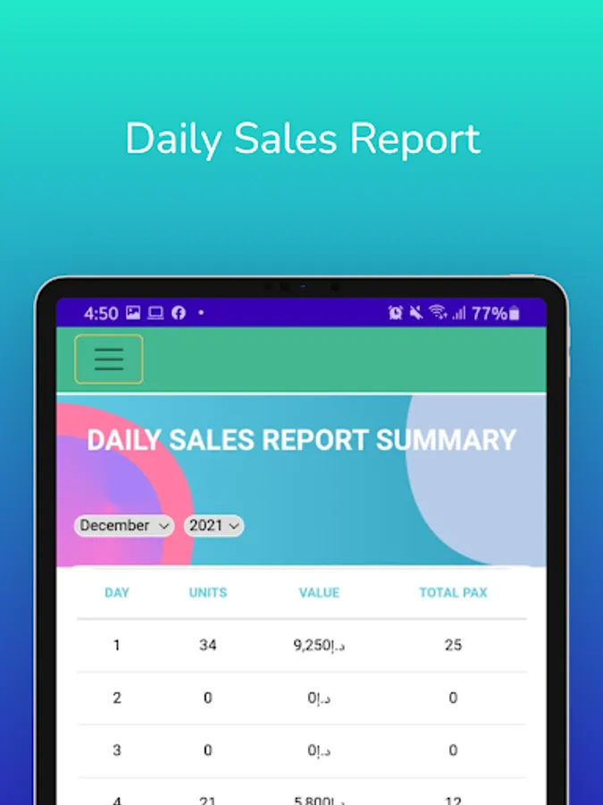 Retail Sales App enable the salesperson to track the daily sales record. Daily sales tracking record allows a salesperson to know about the highest and lowest sales. This contributes to knowing what level a salesperson has reached and how to make strategies if sales are required to be increased.