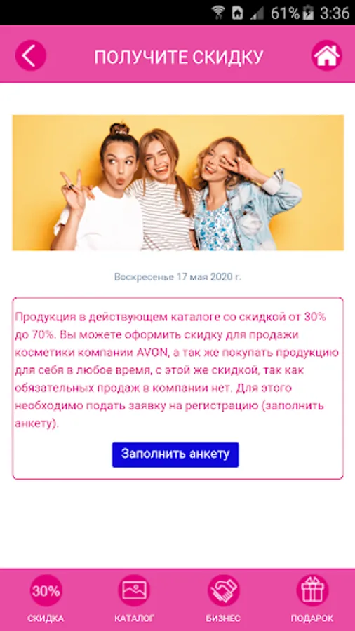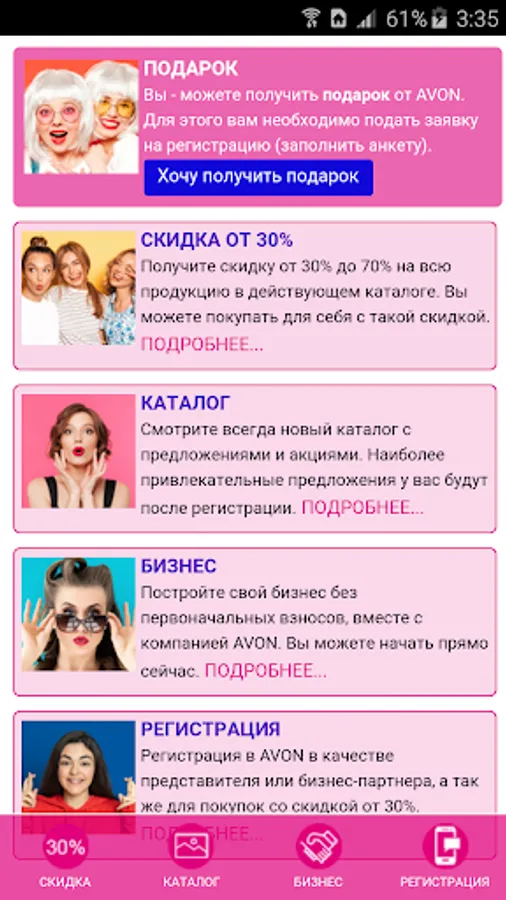 Are you interested in the AVON theme and everything related to this? Find all the necessary information about catalogs, gifts, discount, etc. in this application.