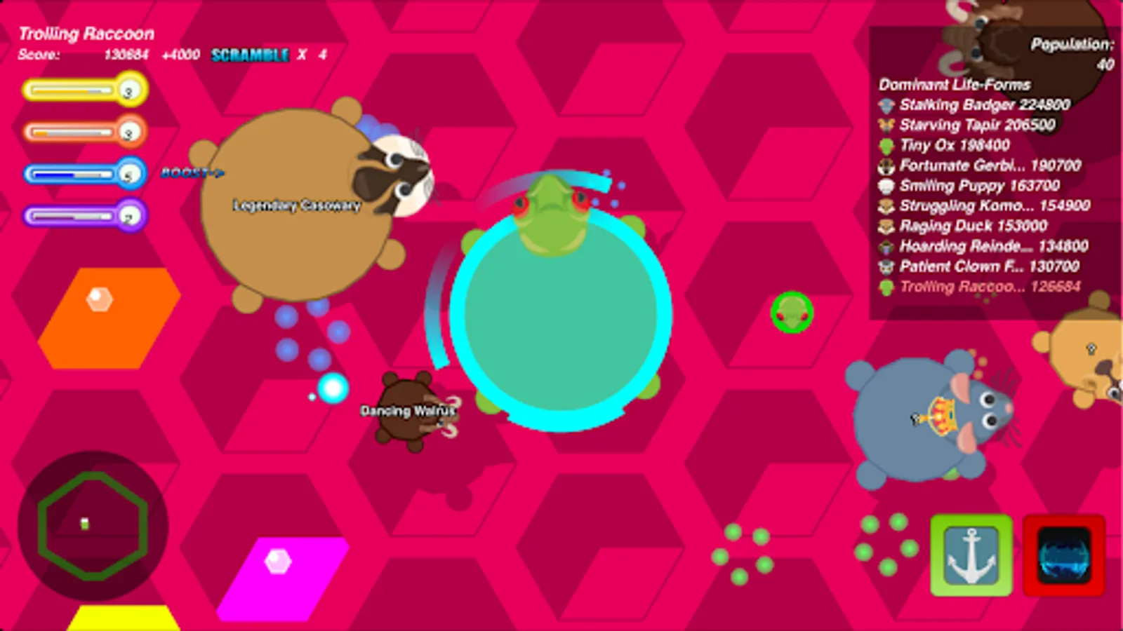 Crash into your opponents to tackle them! If you knock other Anumo out of bounds you get bonus Hangry coins and their Peptojel is up for grabs!