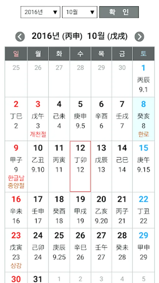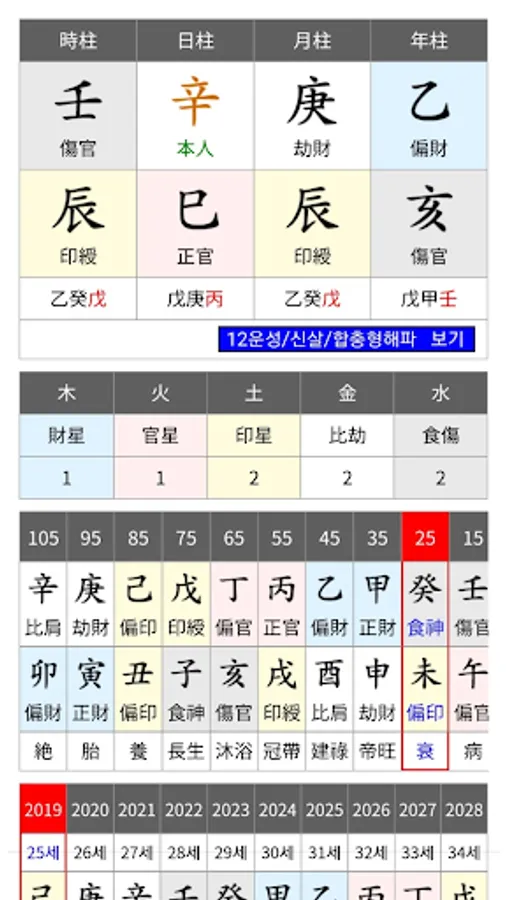- If you click on Daewoon or Yearly Fortune, the month, entry date, 12 fortune, and Shinsal of the year are automatically converted.