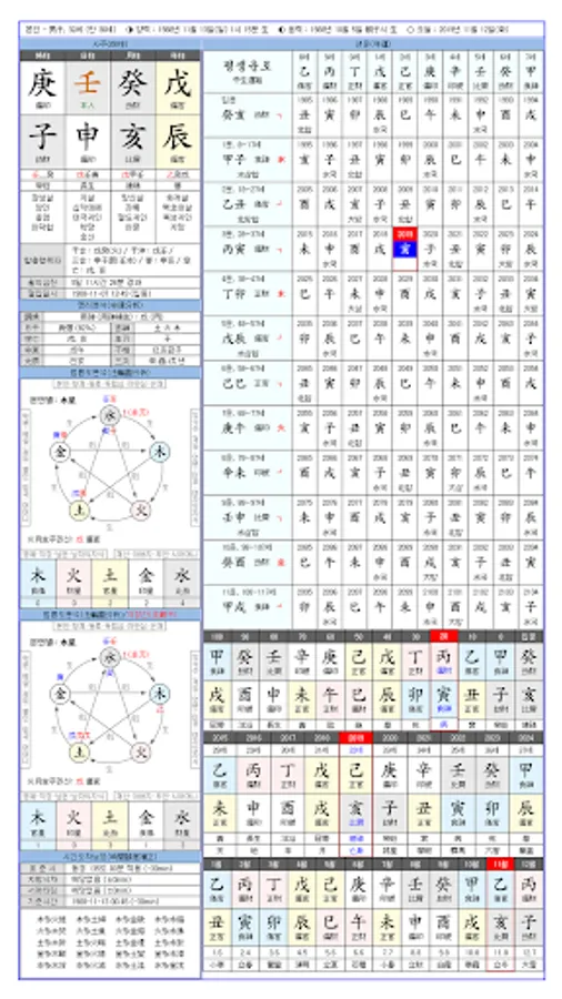 Analysis of one's four weeks name-style, great luck, samhap, change of lifelong luck and change in lifelong luck運星), etc., accurately show the essential data for fate judgment.