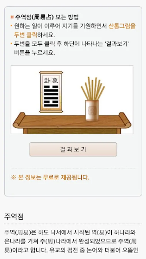 2. Paid Services: Life Equation, Orthodox Name Solving, Naming, Key Week Analysis, Compatibility Evaluation, Marriage Choice, Moving Choice, Tarot Card, Protagonist Shinsoo, Six Hyojeom, etc.
