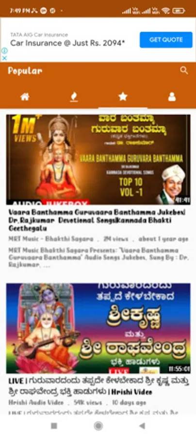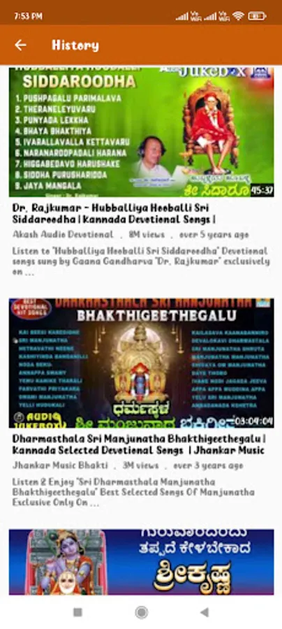 - Your viewed videos are instantly available in history. You may re-watch the best Kannada Devotional Songs, again and again by visiting your history in the app