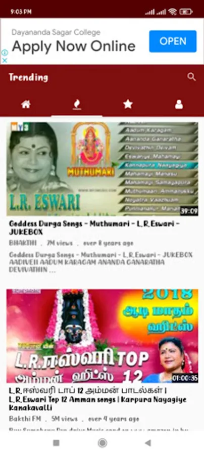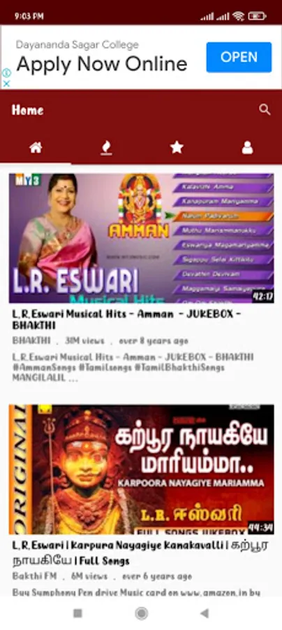 Download LR Eswari Amman Bakthi Padalgal App now and start watching the best videos such as Tamil Devotional Songs of Kamakshi Amman, Meenakshi Amman, Karumari Amman, Mariyamma, Durgai Amman, Angalamman among others immediately and enjoy instant gratification