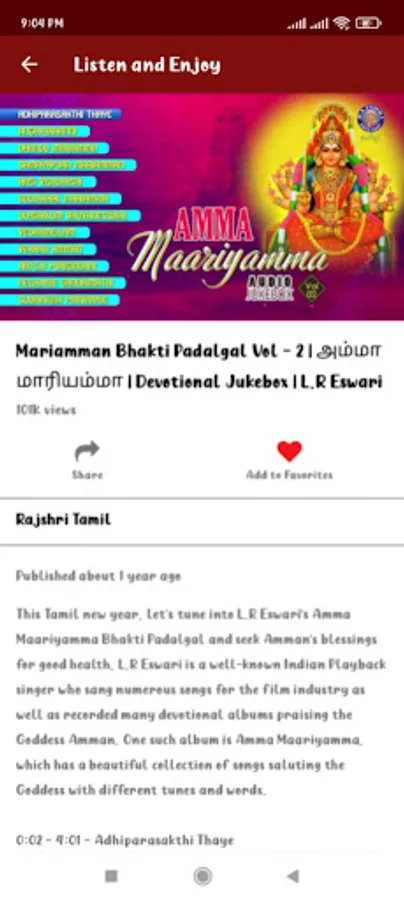 - You can add the LR Eswari Amman Bakthi Padal Tamil you love to favorites to view them whenever you want in the app. You may also remove them, whenever you wish