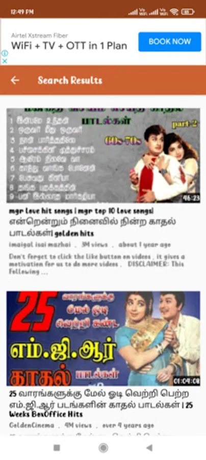 - MGR Tamil Old Songs Hits follows the YouTube API Terms of Service. This App does not download YouTube videos. You may only stream and share the videos