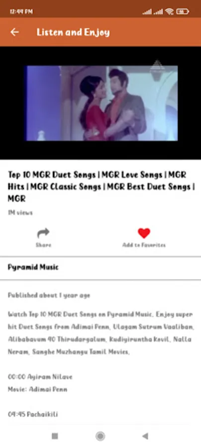 - You can add the MGR Tamil Old Hit Songs (எம் ஜி ஆர் தமிழ் பழைய பாடல்கள்) you love to favorites to view them whenever you want in the app. You may also remove them, whenever you wish