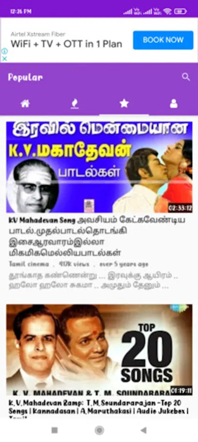 Download Tamil Old Songs (தமிழ் பழைய பாடல்கள்) App now and start watching the best videos such as top evergreen songs of MGR, Kannadasan, Gemini Ganesan, MS Viswanathan, Ramamoorthy, KV Mahadevan, TM Soundararajan, Sivaji Ganesan hits among others immediately and enjoy instant gratification
