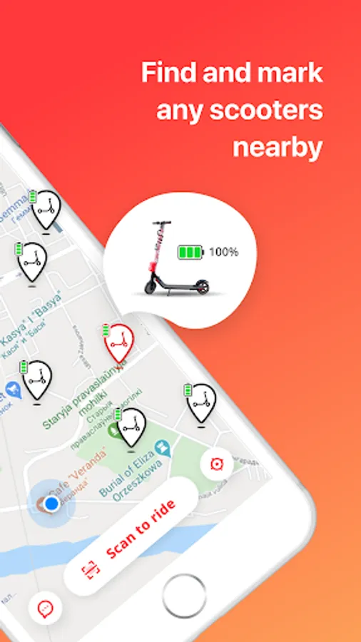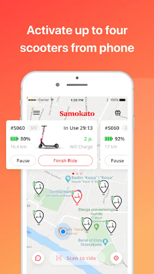 Bring the motion into your everyday life with Samokato — electric scooter sharing app. Use the app to find dockless electric scooters that are available anytime to get you across the city. Open the app, find the nearest e-scooter, and enjoy the ride!