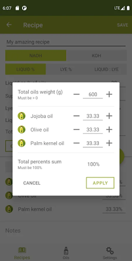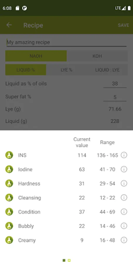 * Options for liquid(KOH), hard(NaOH) or hybrid (KOH + NaOH) recipes