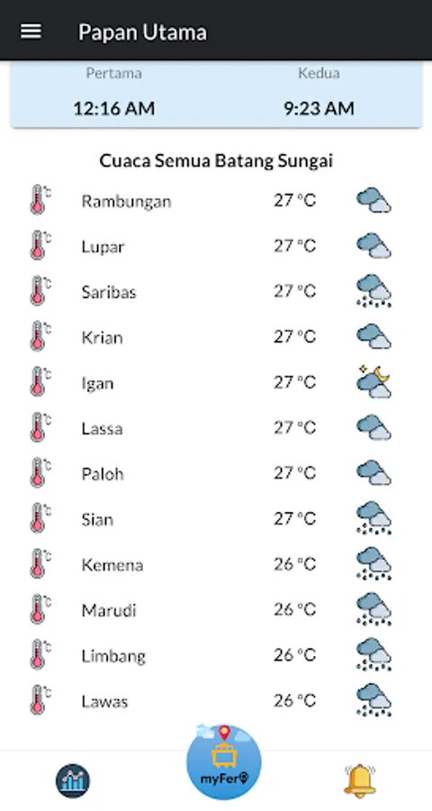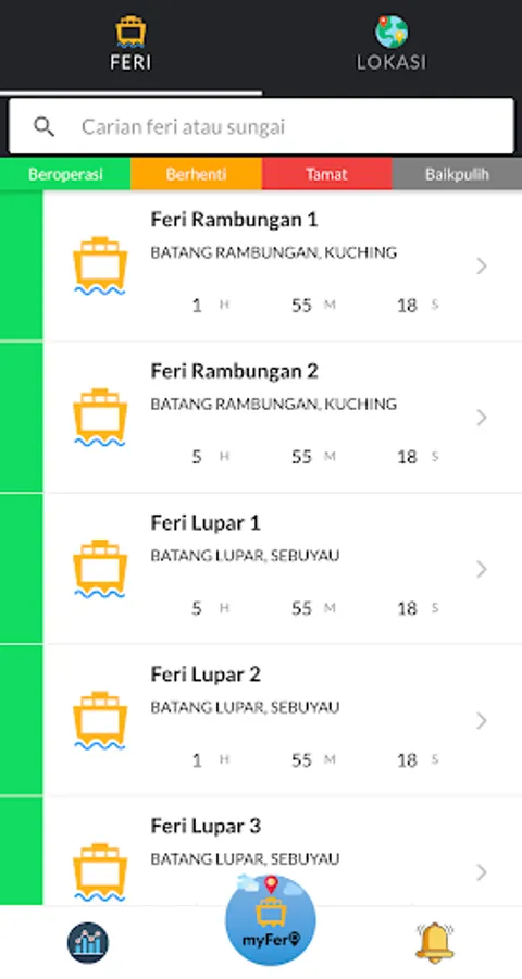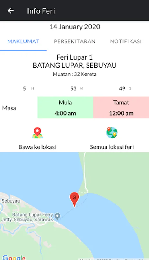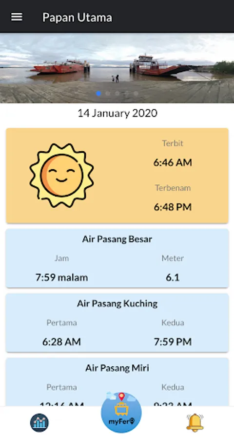 Provides information on all ferries in Sarawak on Location, Hours of Operation, Tide Water according to the Sarawak Almanac calendar, Notifications and Weather.