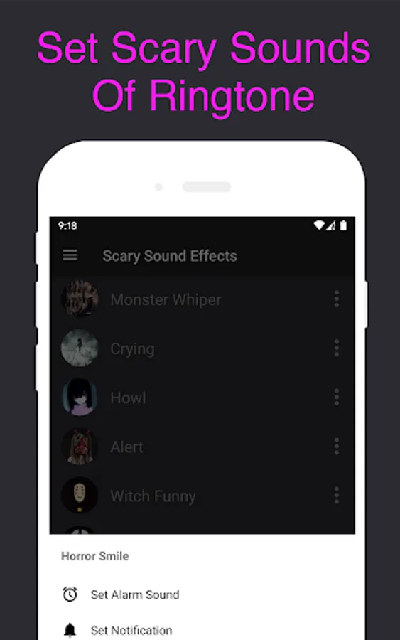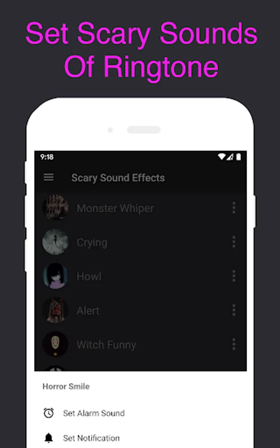 With Scary sounds You can use to hear and Scary sounds include more than 100 scary ringtones