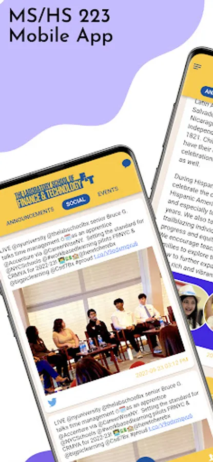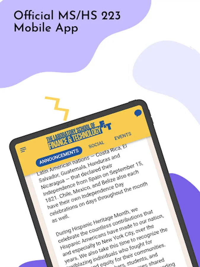 The app serves the guardians, students and staff of MS/HS 223 by providing resources, announcements and the latest news regarding our school community.