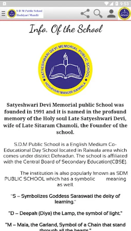 Satyeshwari Devi Memorial Public School was founded in 1991 and it is named in profound memory of the Holy Soul LATE SATYESHWARI DEVI, w/o Late Sita Ram Chamoli, the founder of the school.