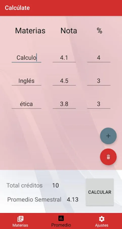 This application is designed to be able to easily and quickly calculate, save and display your academic notes, whether from college or university. As a user, you will be able to calculate the average of each subject you take individually, and also make a total average of all your subjects, that being your semester average.