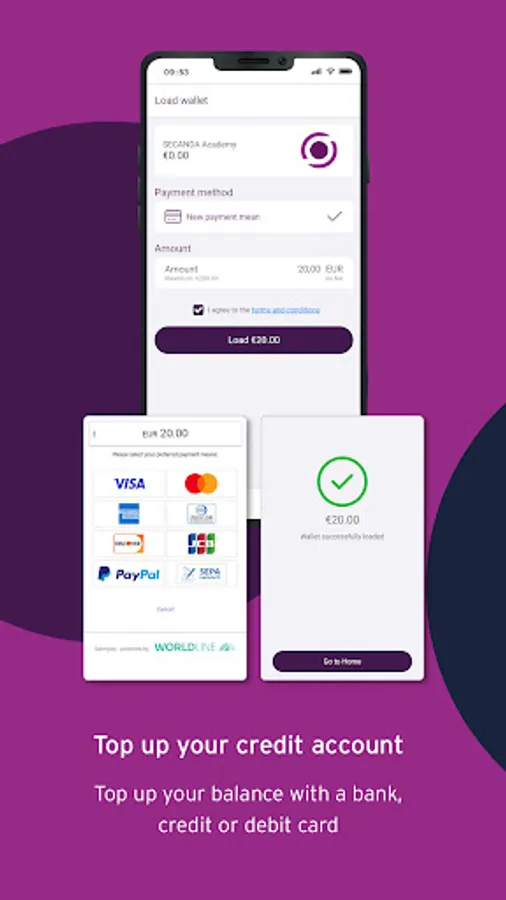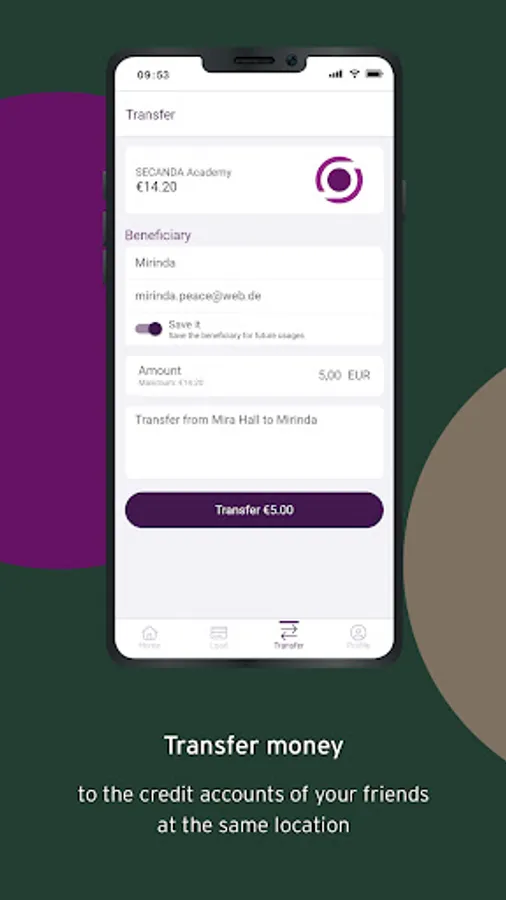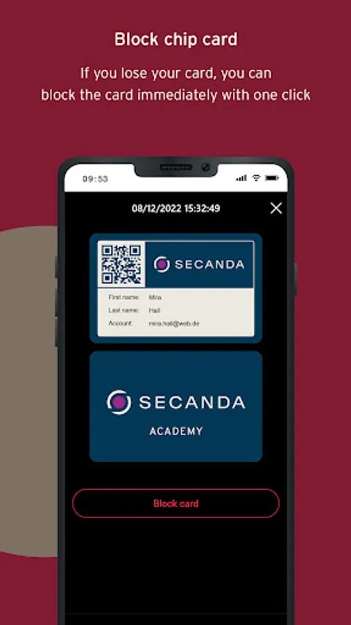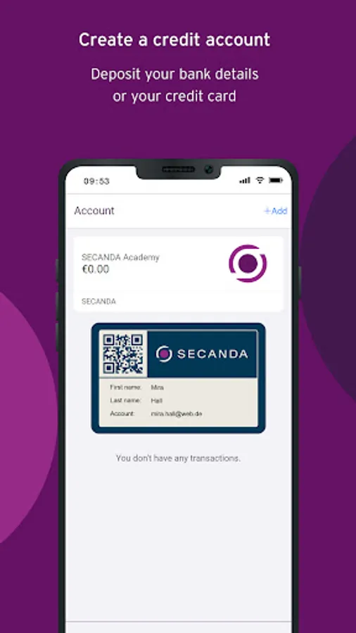 The SECANDA app turns your smart card into the next generation payment card. Simply download the app and select the campus or location where you want to pay with your card from your personal credit account and register. Alternatively, scan the QR code that was sent to you. You deposit your bank details or credit card via the app and can then top up your personal account via bank account or credit card at any time. From now on, you can conveniently pay with your chip card from your account anywhere in the location and see all your transactions in the app. Or you can use the app to transfer money to the accounts of your friends who are registered on your campus or at your location just like you. And if you lose your card, you can simply block it via the app.