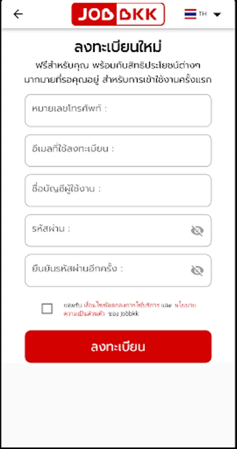 Register as a member of the JOBBKK.COM website through the Application and use it immediately.