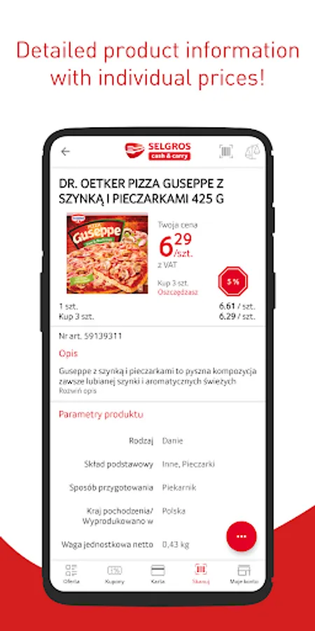 Bind your Selgros card with our mobile app and shop Selgros.