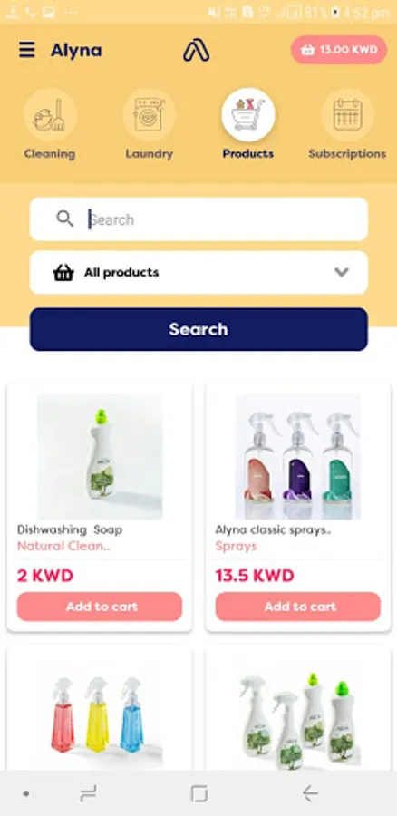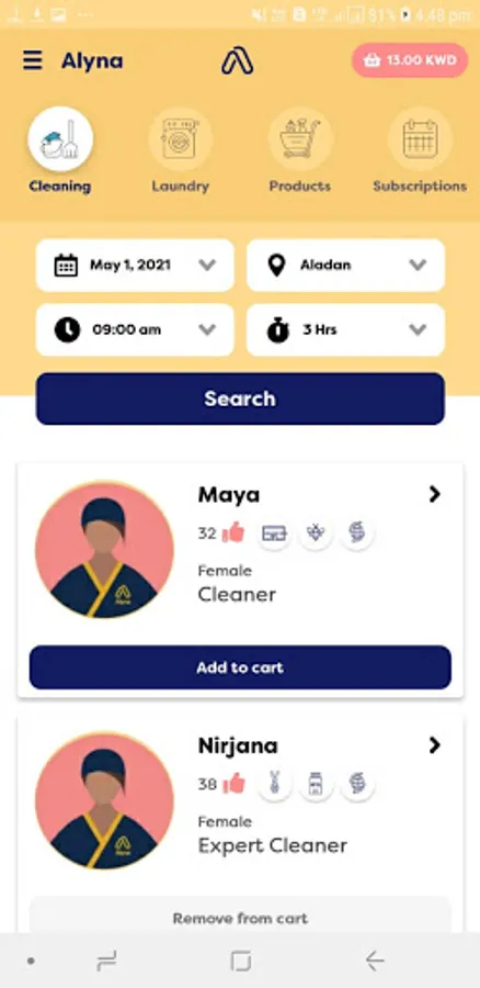 Alyna is the complete cleaning app. You can use the Alyna for booking a cleaning appointment or a laundry service. And for buying exclusive cleaning products. Download the Alyna app today.