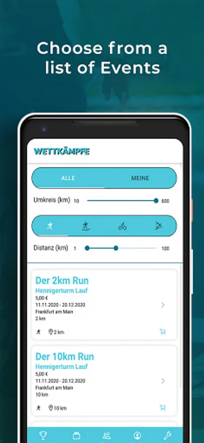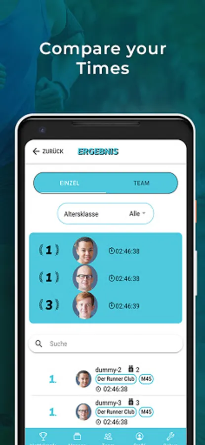 Compete with others, alone or in a team. The app lets you take part in competitions and share the results with the whole world.