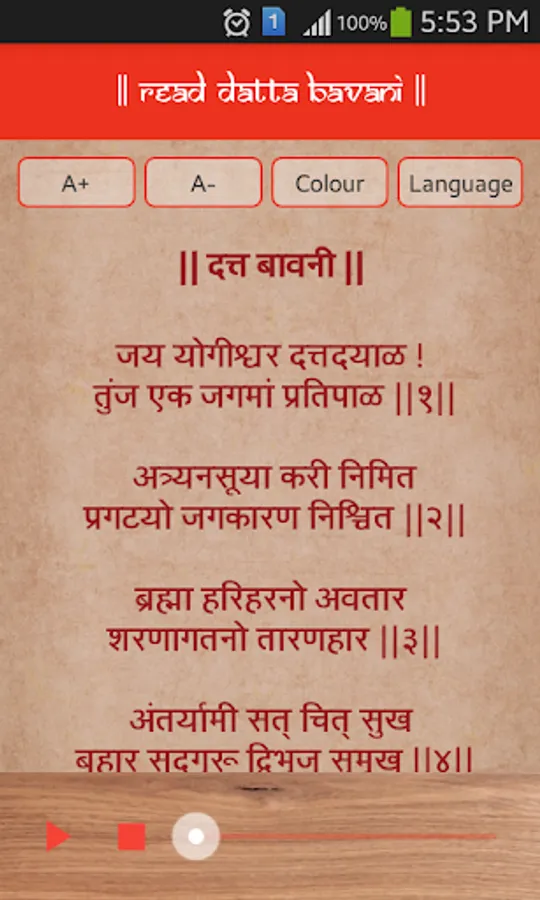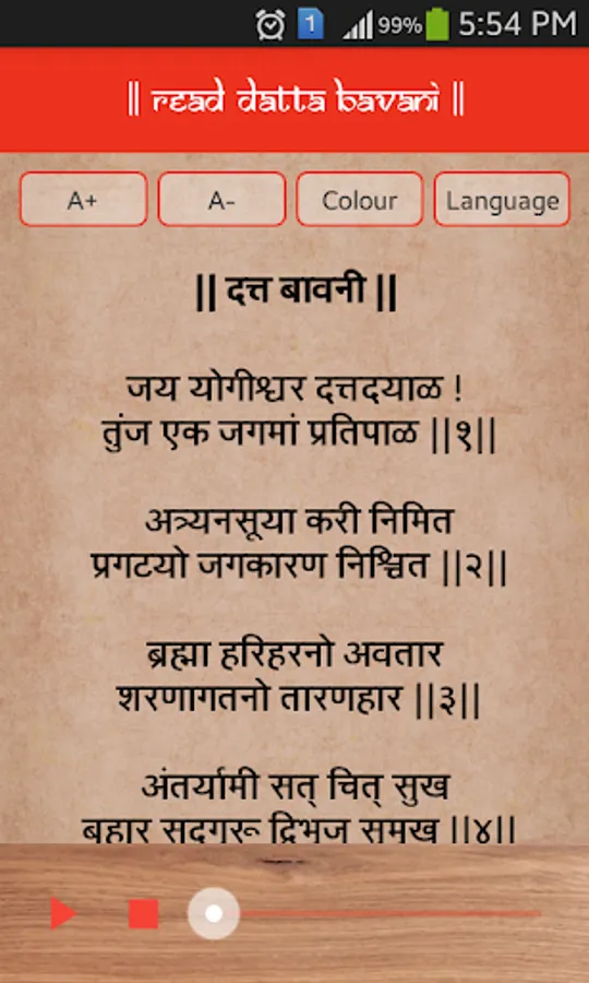 Datt Bavani application is aimed to be useful for God Dattatreya devotees. It provides a brief description about Lord Datta, Datta Bavani and its Origin. App contains translation of original Gujarati Datta Bavani written by Param Pujya Shri.Ranga Avadhuta Maharaj in both Devnagari and English languages.